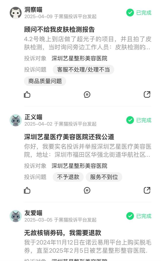 能够看到,深圳艺星医疗美容在吸脂术后的问题并非单一消费者的性格或得理不饶人的问题,而是对于其医生的医疗技术存在一定的范围的负面共识。值得探讨的是,该机构的众多投诉当中,吸脂只是其中一部分,其他问题也颇为显著。