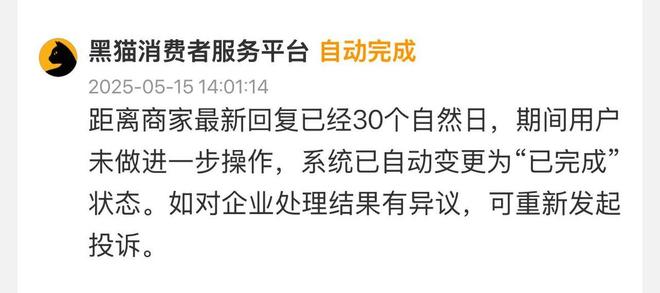 虽然黑猫投诉平台显示投诉完成量同样为71件,但部分投诉实际为消费者未进行后续处理的结果。