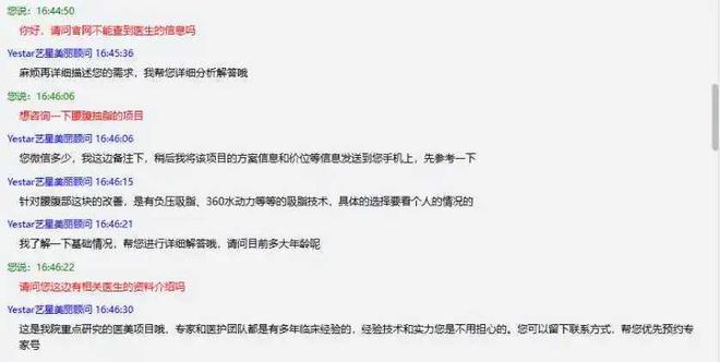 消费电子杂志记者以消费者进行整容项目咨询,问及能否在官网查询其医师信息时,并未得到正面回复,只是一味被要求添加微信,再发送项目方案信息和价位等。