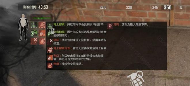 肾上腺素状态指在肢体受损后未使用止痛药的状态,持续期间不会受到损坏的影响,结束状态后将会进入一定的冷却期,冷却期间肢体再次损坏无法触发。
